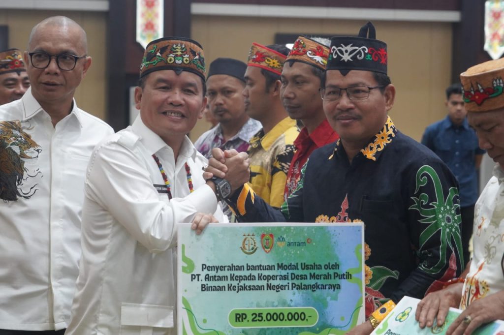 Penyerahan bantuan modal usaha sebesar Rp25 juta dari PT Antam kepada Koperasi Desa Merah Putih binaan Kejaksaan Negeri Palangka Raya.